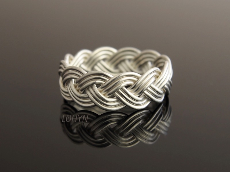 Handgeflochtener Ring aus 925/- Silber. Die Breite ist ca 6,5mm.