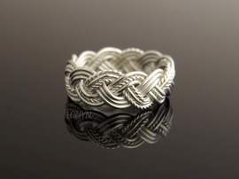 Handgeflochtener Ring aus 925/- Silber. Seine Breite ist ca 6,5mm.
