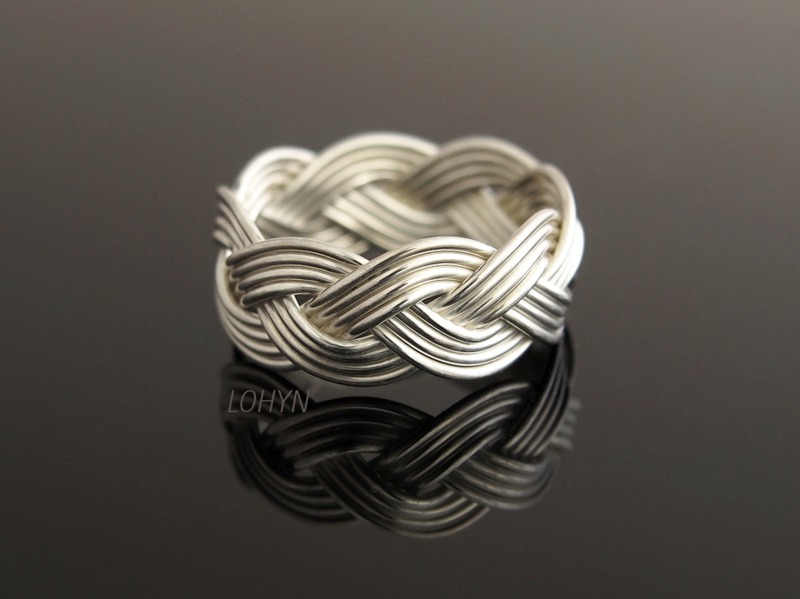 Handgeflochtener Ring aus 925/- Silber. Seine Breite ist ca 8,5mm.