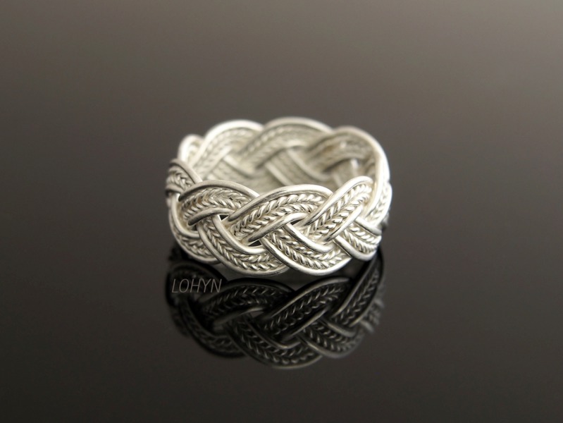 Handgeflochtener Ring aus 925/- Silber. Seine Breite ist ca 8,5mm.