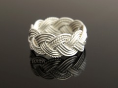 Handgeflochtener Ring aus 925/- Silber. Seine Breite ist ca 8,5mm.