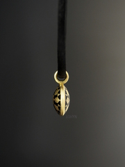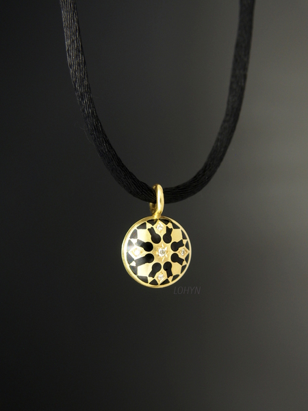 Anhänger aus 750/- Gelbgold mit schwarzem Feueremail und 5 Brillanten 0,03ct TW/IF (lupenrein). Die Rückseite ist ebenfalls emailiert.