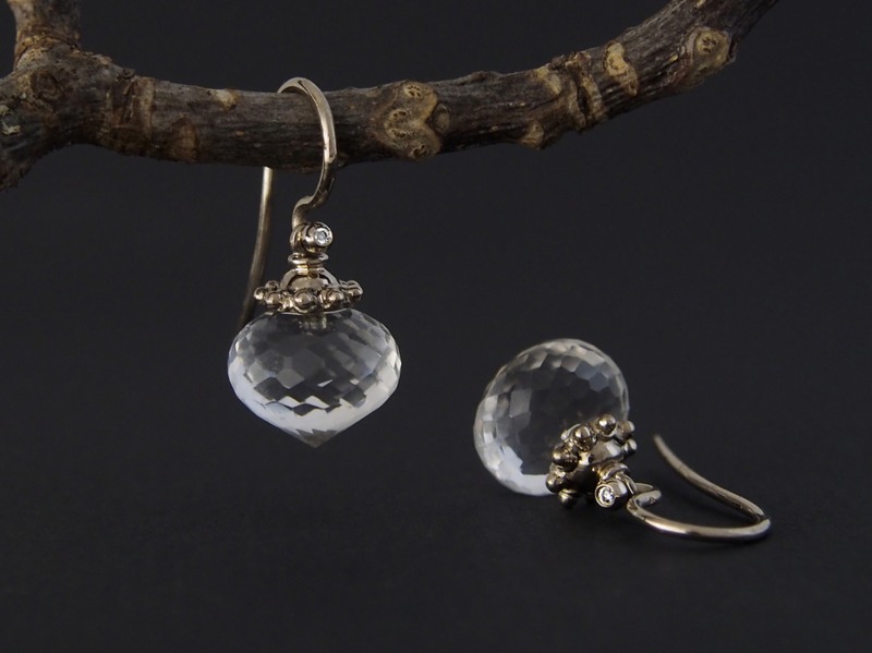 Ohrhänger aus 750/- Weißgold mit Bergkristallen im Onioncut.