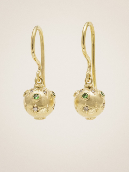 750/- Gelbgoldohrhänger Kugelform mit 16 zimtfarbenen Brillanten total 0,12 ct und