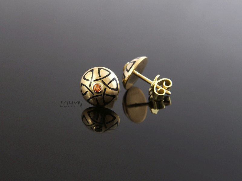 Ohrstecker 750/- Gelbgold, schwarz emailiert mit