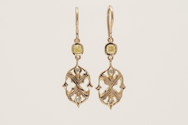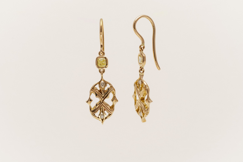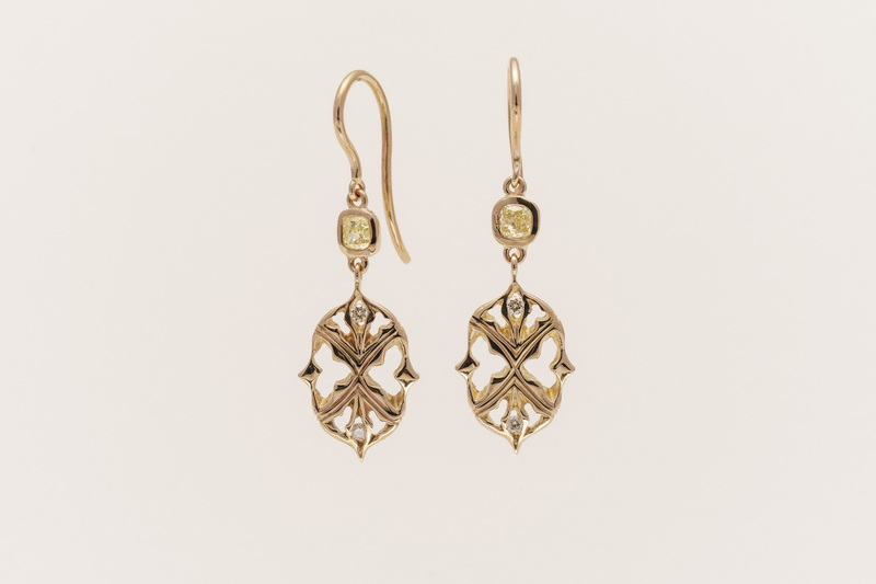 750/- Rotgoldohrhänger mit 8 zimtfarbenen Brillanten total 0,08ct und