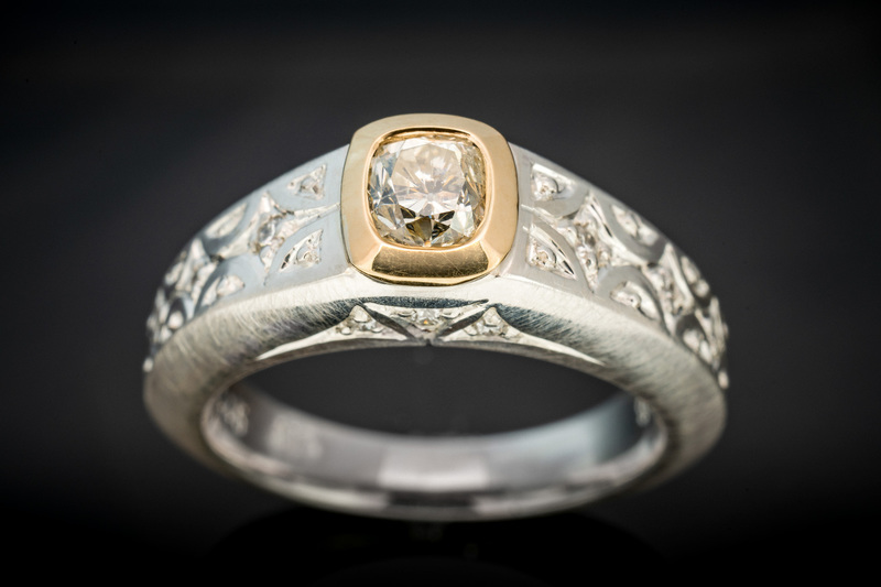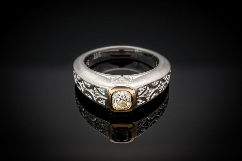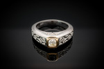 Handgearbeiteter Ring 925/- Sterling Silber mit Goldfassung in 750/- Gelbgold