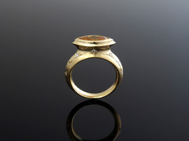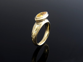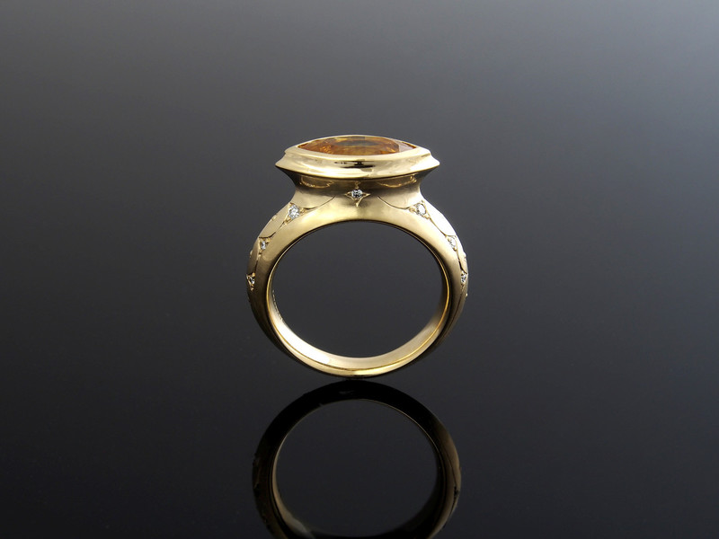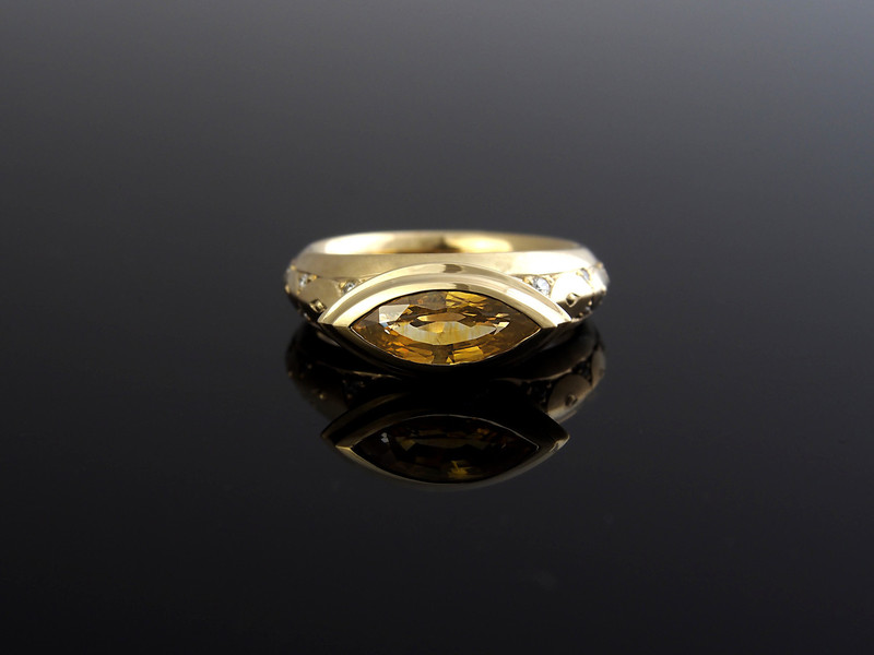 750/- Gelbgoldring mit gelbem Saphir und 14 Brillanten