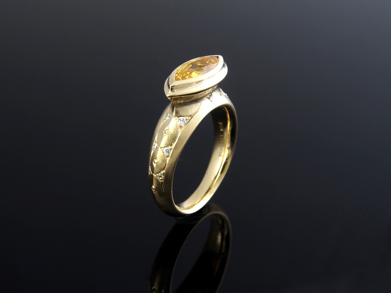 gelben Saphirnavette und 14 lupenreinen Brillanten
