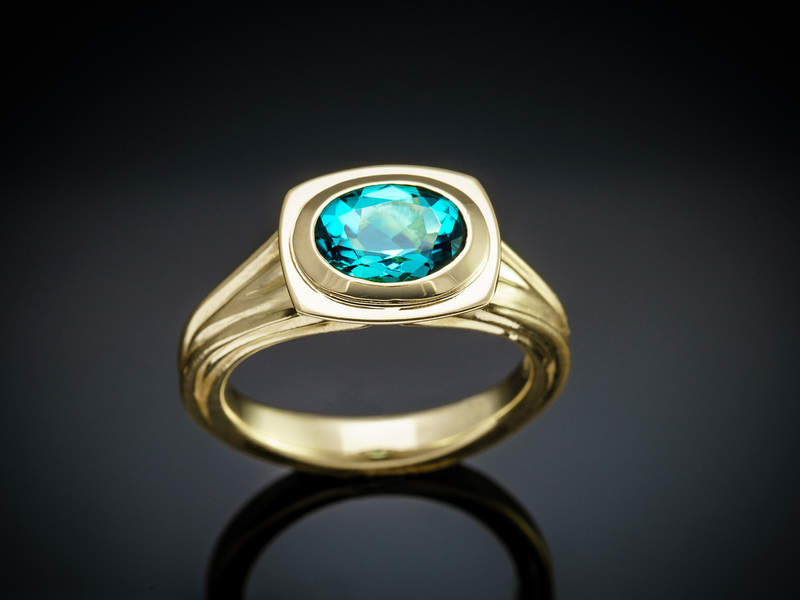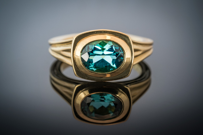 Der Ring ist aus 750/- Gelbgold gefertigt mit Turmalin oval 1,22 ct